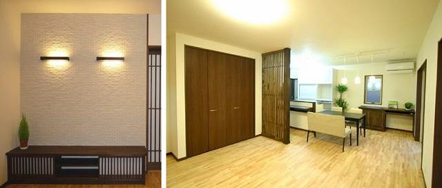 施工実例 北茨城市 H様邸 太陽の光を電気に変える自家発電! エネルギーを創って売れるECOモダンハウス。 (2010年10月30日〜11月1日に見学会を行いました。) ギャラリー 格子がお客様を温かくお出迎えする玄関。壁面に備え付けたベンチは、お出かけの準備や、たくさんの荷物を持って帰宅の際など、どんな場面でも優しくお手伝いしてくれます。 床材にはラバーウッド無垢床を使用。TVボードの壁一面には、調湿・脱臭効果のあるエコカラットを使用しました。 塗り壁には珪藻土を使用。伝統的な和の空間が完成致しました。 施工実例に戻る