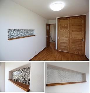 高萩市 S様邸 カフェのような可愛いおうち (2015年 7月11日〜13日:完成見学会開催) ギャラリー 曲線のやわらかい雰囲気が家族を、お客様をお迎えする、ほっとする玄関。 足の裏で心地よさを感じる、ボルドーパイン無垢フロアー。 キッチンの背面収納は、家電がすべて仕舞える、見せない収納。 モザイクタイルで可愛らしさがアップした、ニッチ。 お気に入りのアイテムを飾れば、お部屋のアクセントになること間違いなし。