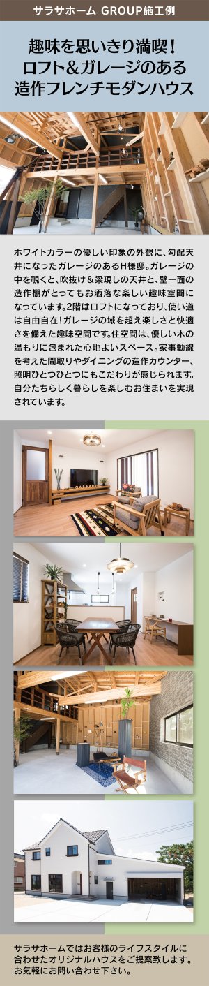 自然素材をなるべく使ったオーダーメイドの家づくりを心掛けています。光熱費を抑える為に断熱性能にもこだわっています。本物の素材で手づくりのキッチン・造作洗面など、オリジナルの空間もご提供しています。新築(注文住宅)・リフォーム・リノベーションのことは、お気軽にご相談下さい。茨城県で住宅を建てるなら、茨城県北茨城市のサラサホーム茨城北にお任せ下さい。